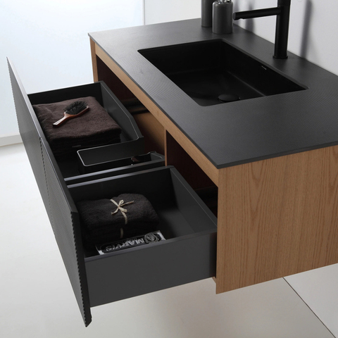 Geprefabriceerde 49 "Enkele Kom Abosluit Zwart Kwarts Steen Badkamer Aanrecht